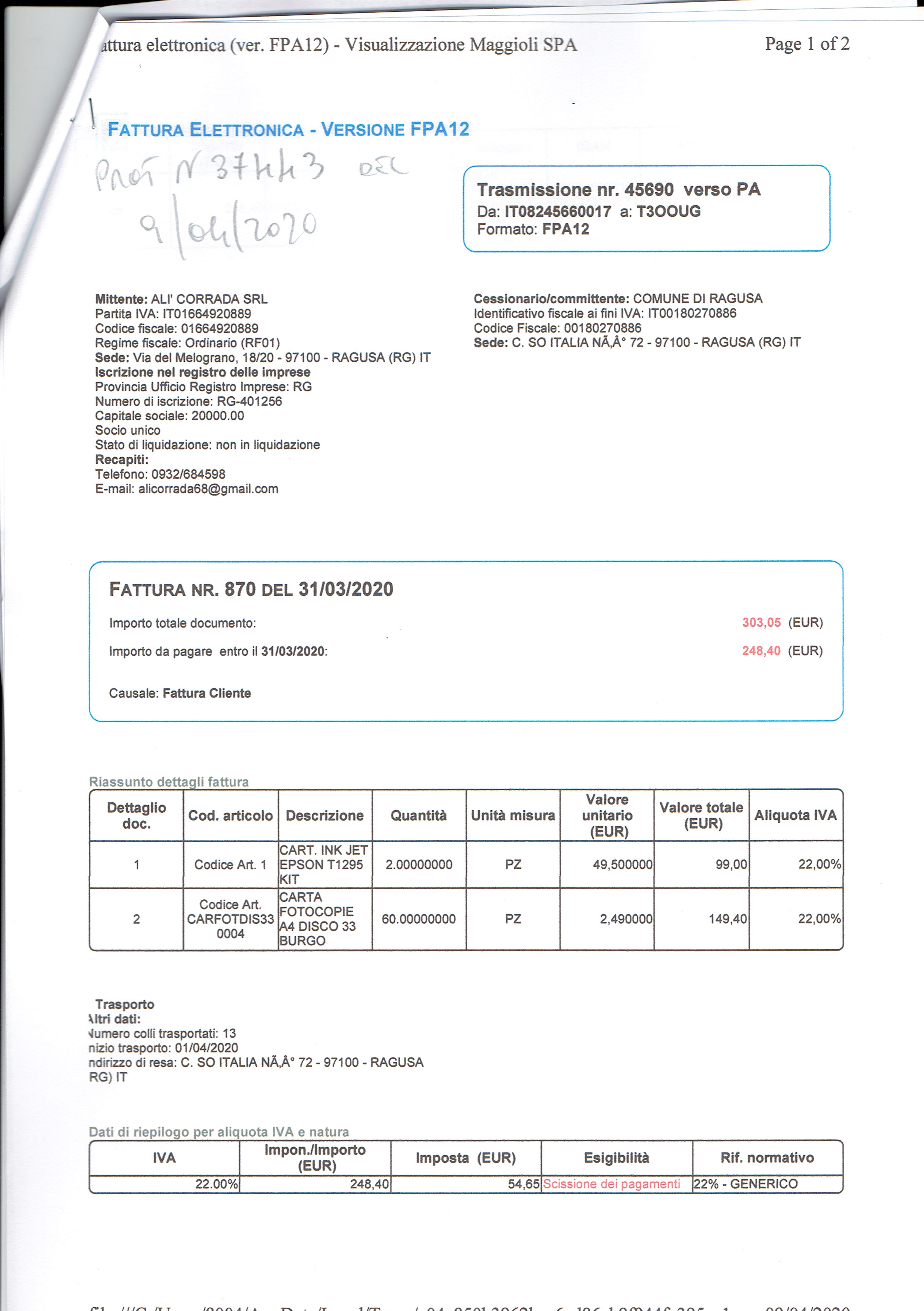 LIQUIDAZIONE SPESE ACQUISTO MATERIALE DI CONSUMO,STAMPATI E VARIE CAP. 1377.4