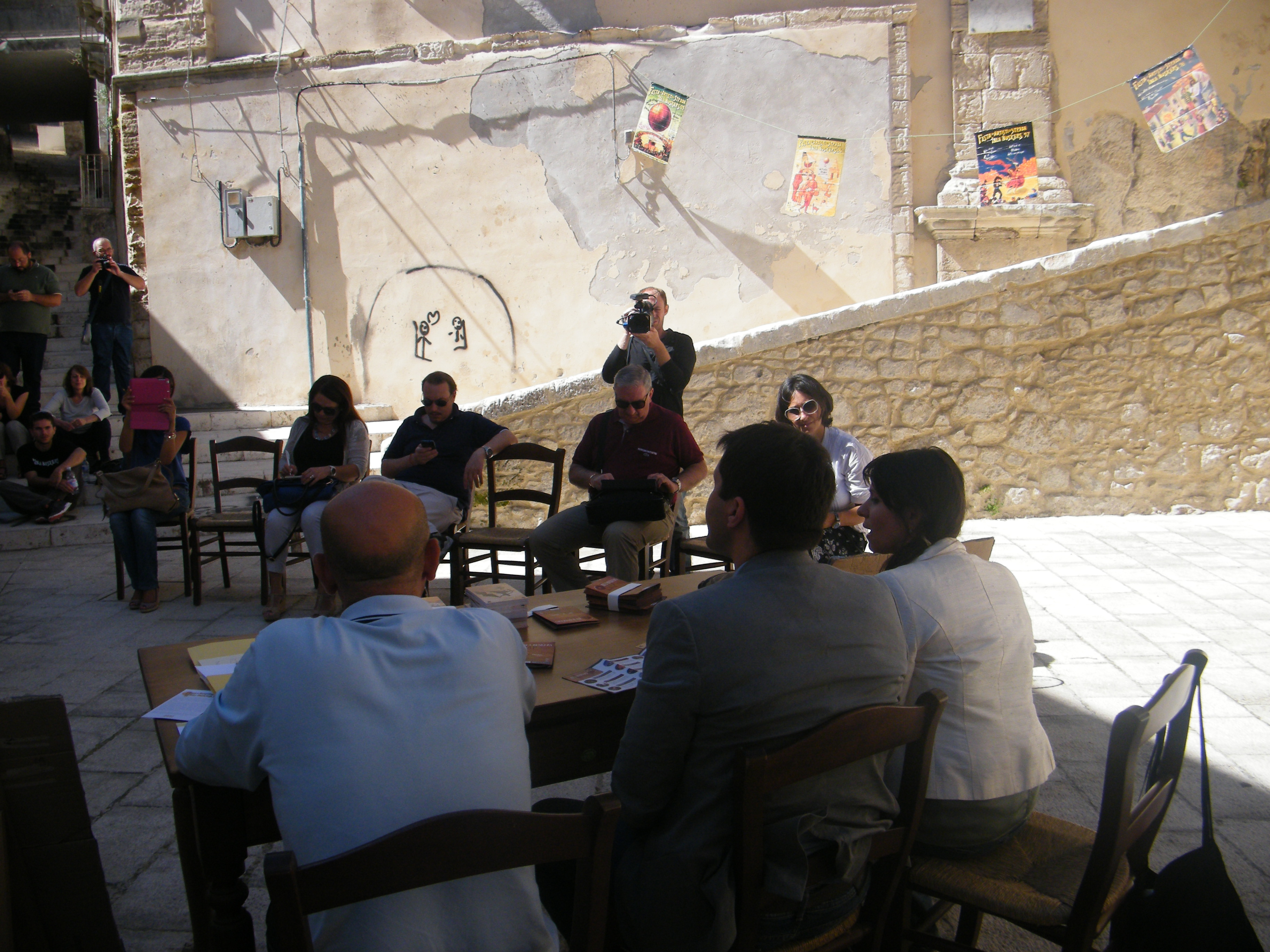 Location dell'incontro con gli operatori dell'informazione è stato il piazzale antistante il Palazzo della Cancelleria, monumento di particolare rilevanza storica dell'antico quartiere barocco, raffigurato nella locandina e nelle cartoline che pubblicizzano l'edizione del Festival degli artisti di strada di quest'anno.