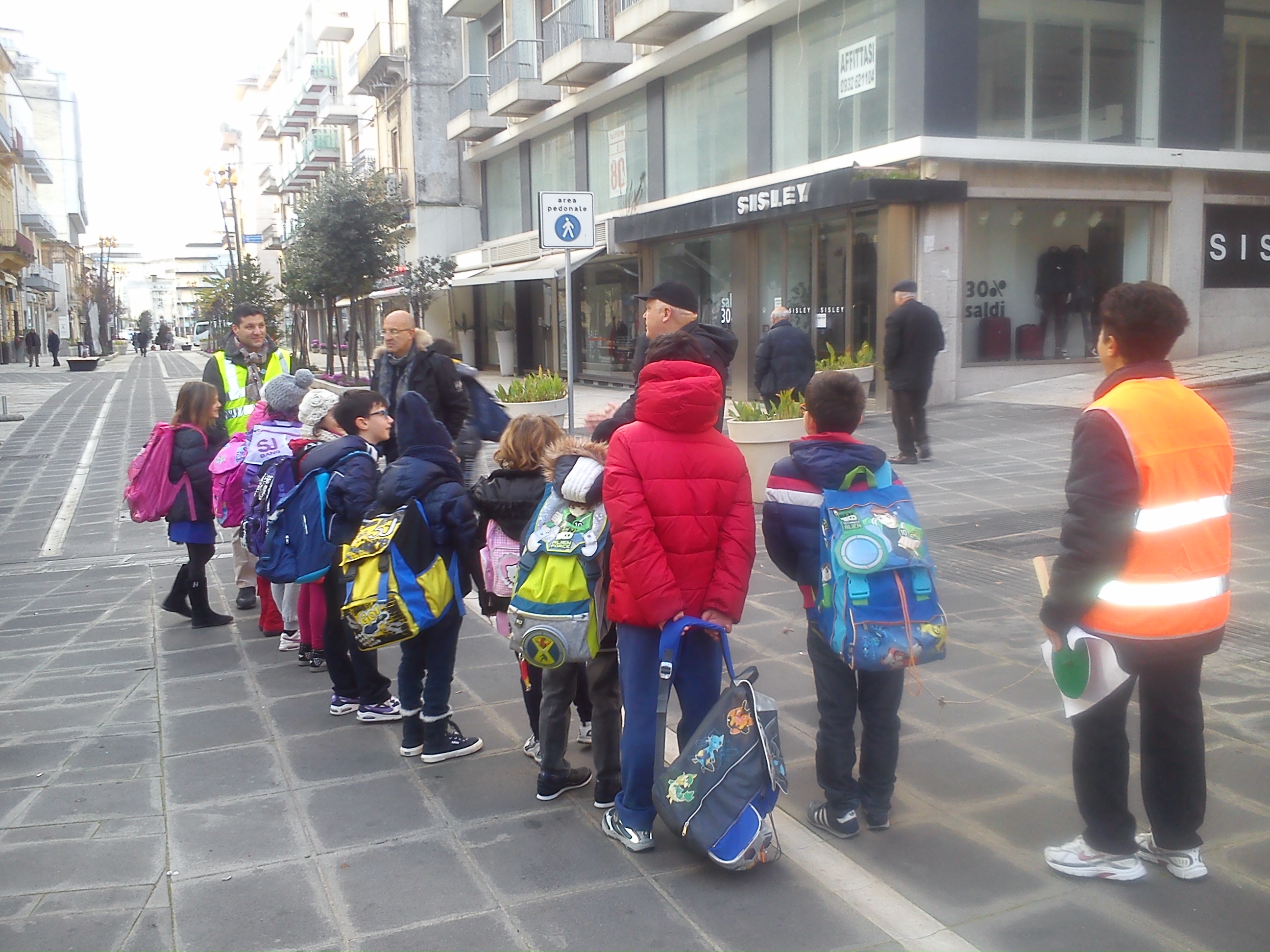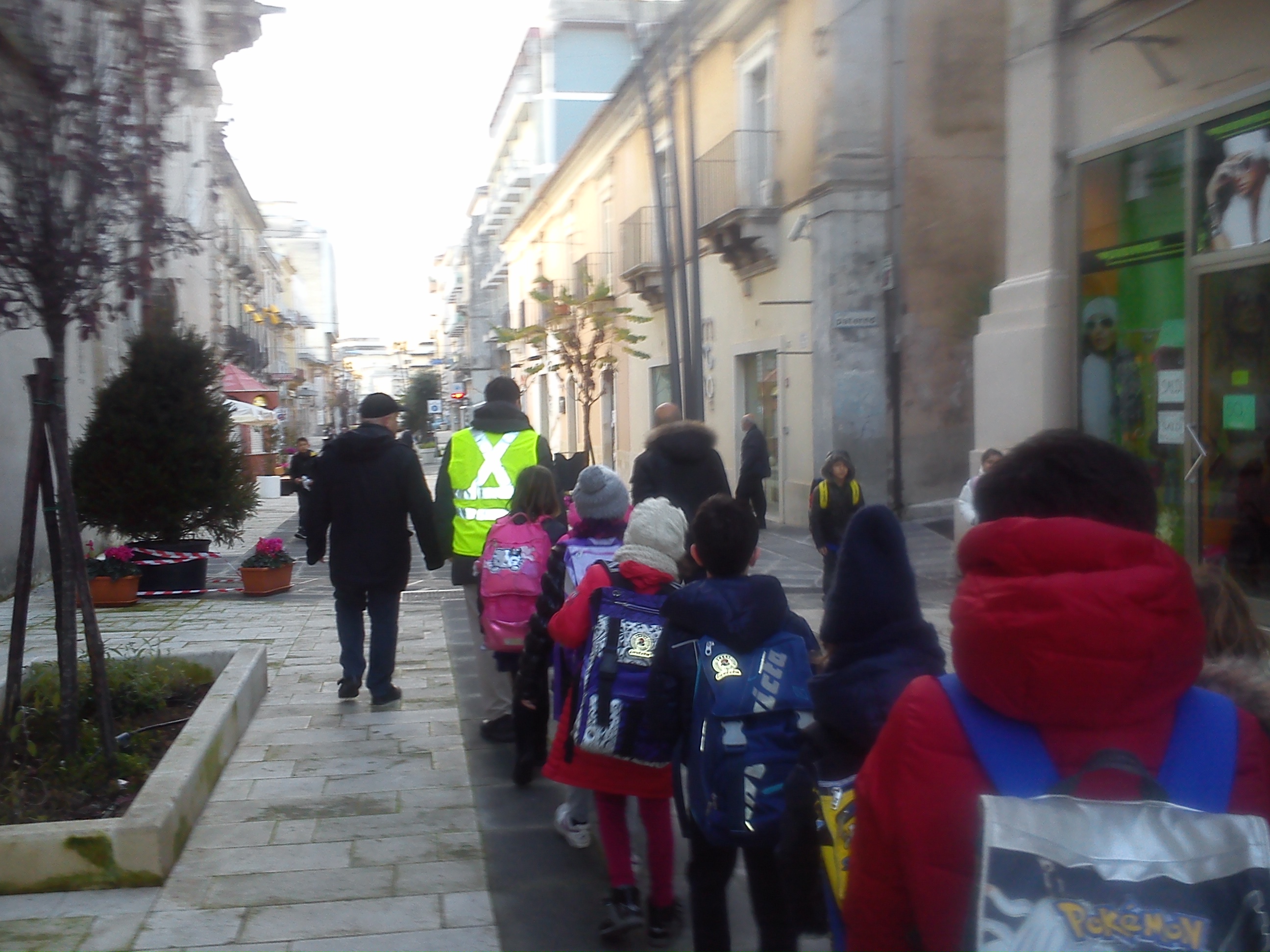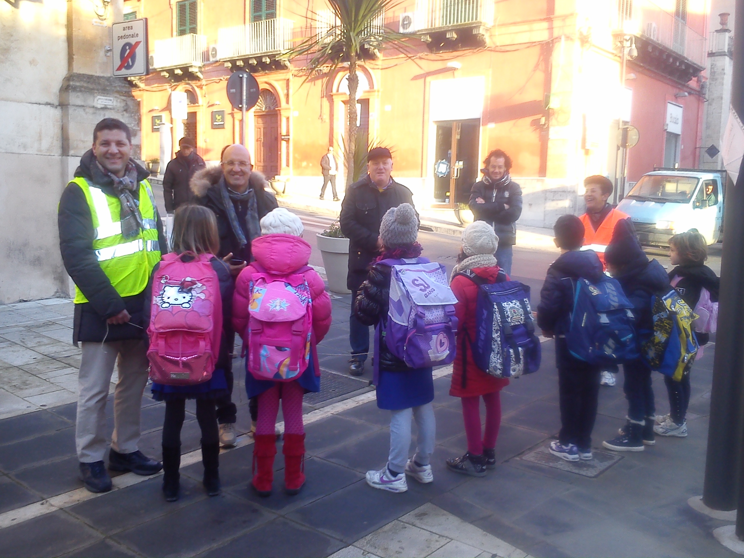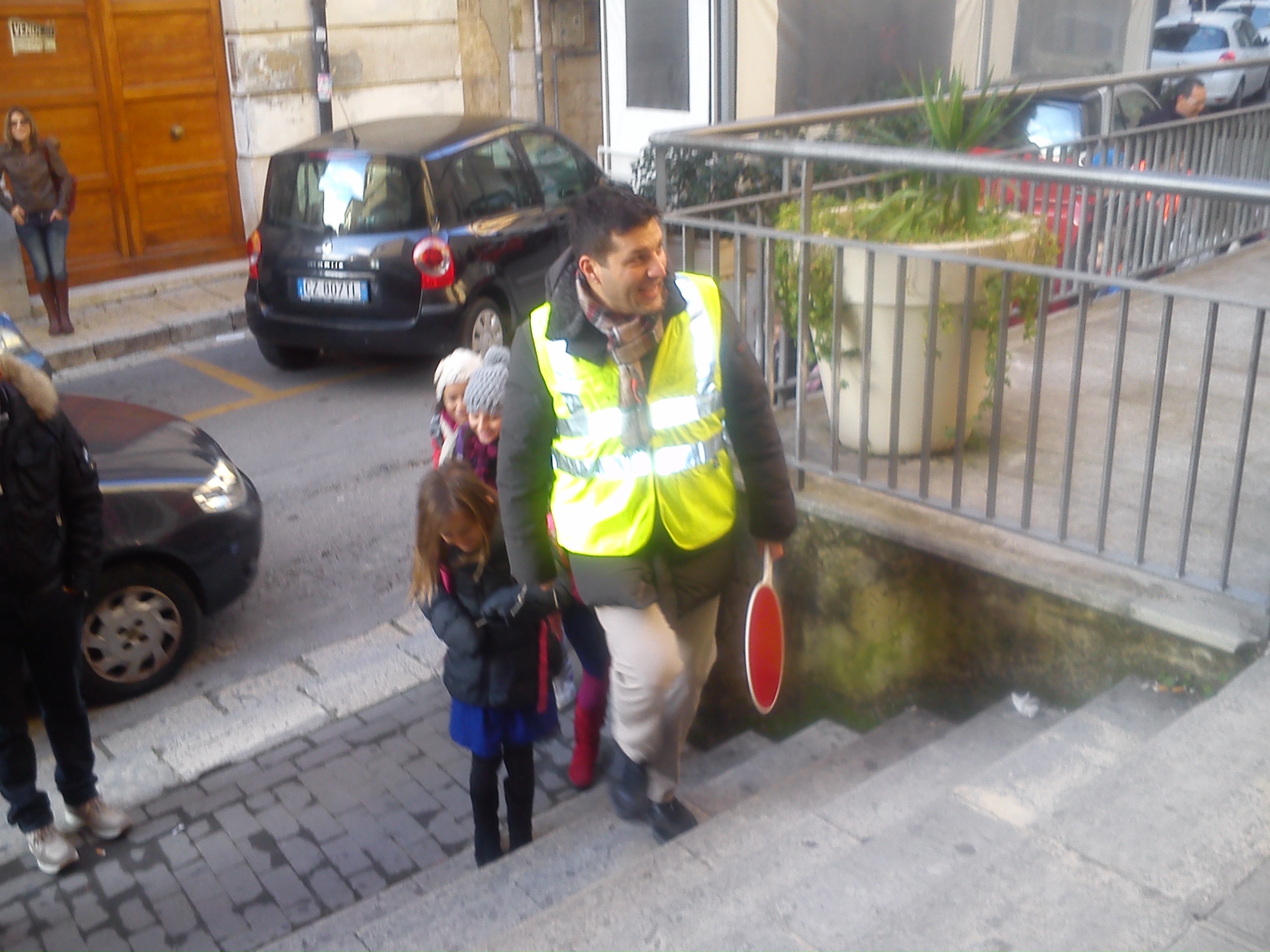 Il primo cittadino infatti, alle 7,45 si è portato in Via Roma e, dopo aver indossato un gilet catarifrangente verde, si è unito ai volontari che effettuano il servizio di accompagnamento a scuola a piedi dei piccoli alunni per portare un gruppetto di bambini fino all'ingresso dell'istituto “Cesare Battisti”.
