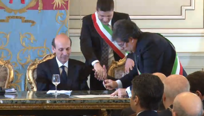 Alla sottoscrizione dell'importante accordo avvenuto ieri mattina a Catania è stato presente anche il Presidente della Repubblica Giorgio Napolitano al quale i rappresentati dei tre comuni, hanno illustrato i dettagli dell'iniziativa che coinvolge anche le tre Camere di Commercio e le tre Province Regionali delle aree coinvolte.
