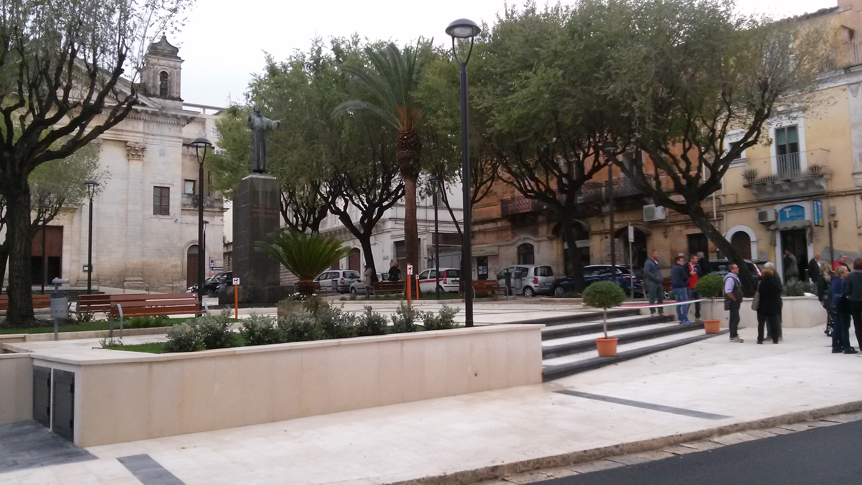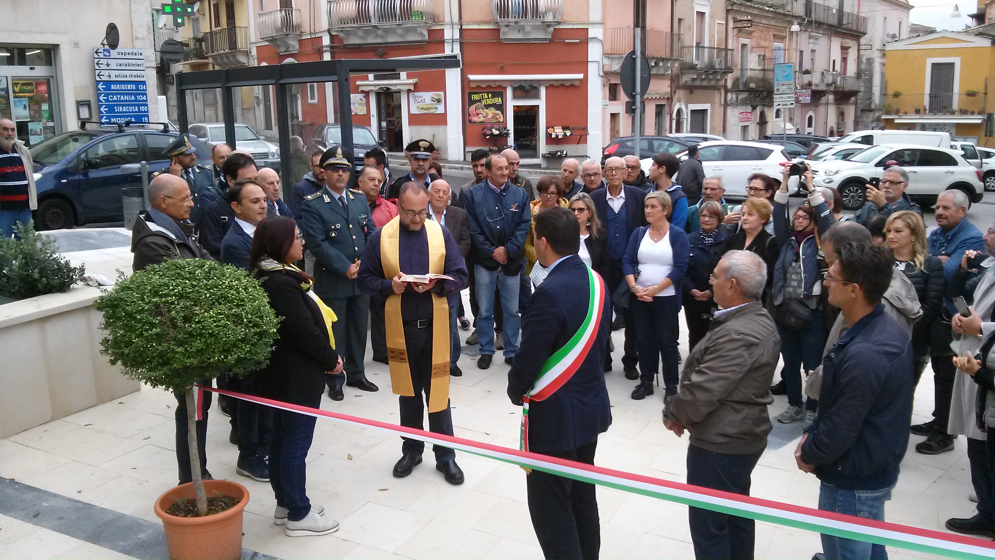 Prima di procedere alla benedizione del sito impartita da don Iudica ed al tradizionale taglio dl nastro inaugurale, c'è stato l'intervento del primo cittadino che ha ringraziato quanti si sono impegnati nell'intervento di riqualificazione del sito, iniziando dai tecnici comunali, per continuare con la progettista Loredana Tumino, l'impresa Battaglia e il farmacista Ottaviano che si farà carico delle spese di manutenzione degli spazi a verde della piazza.