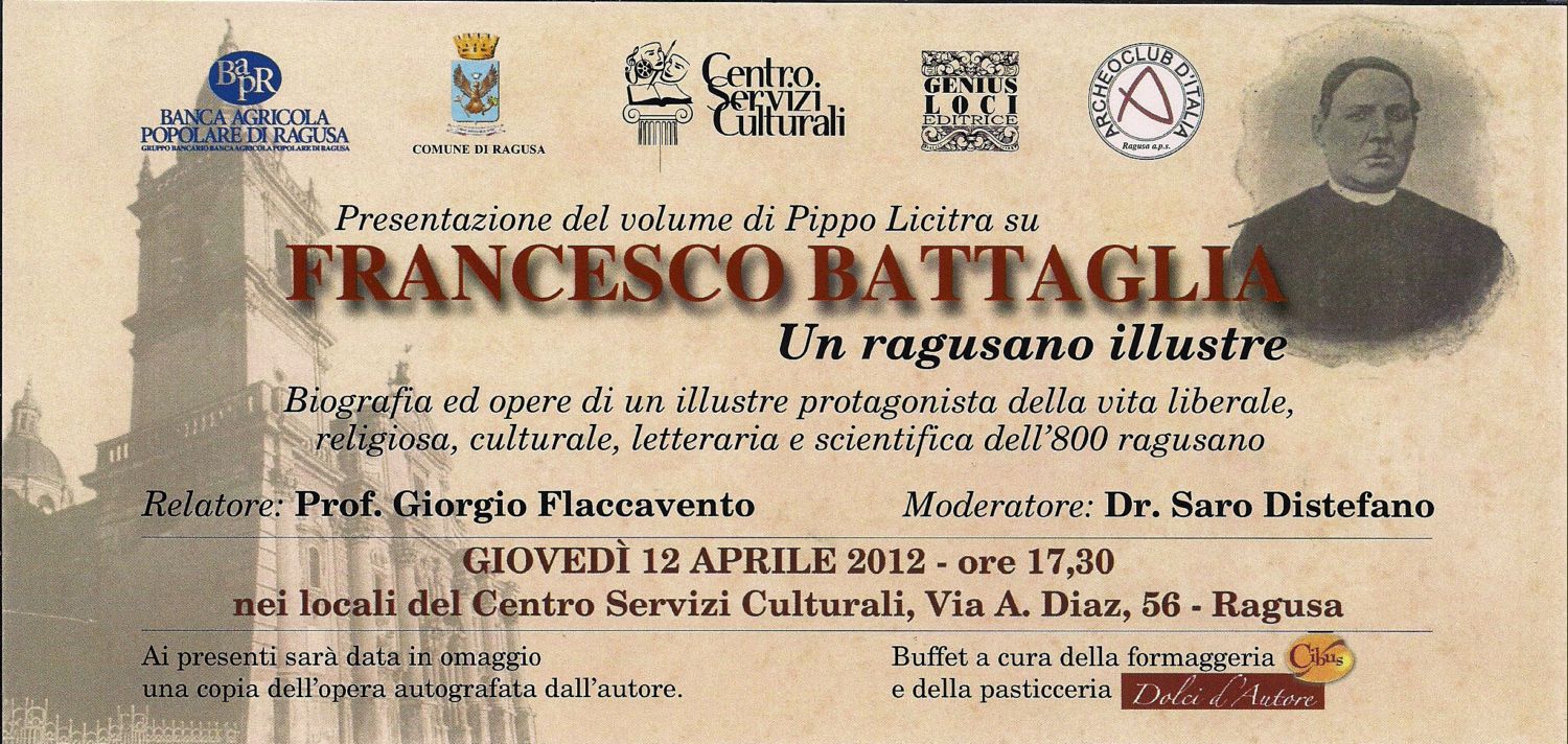 Presentazione libro:"Francesco Battaglia Un ragusano illustre " 12 Aprile - Centro Servizi Culturali
