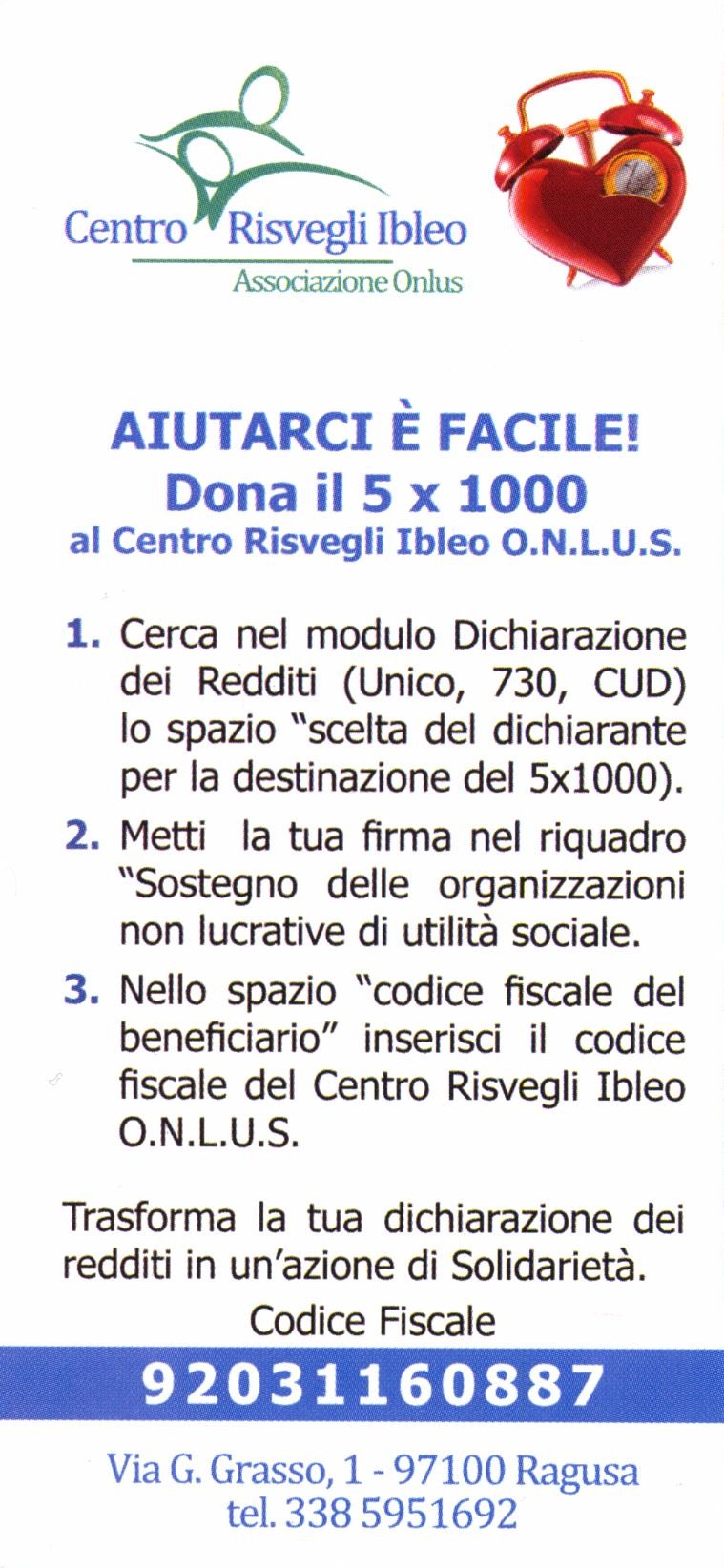 Aiutarci è facile! Dona il 5 x 1000 al Centro Risvegli Ibleo O.N.L.U.S.