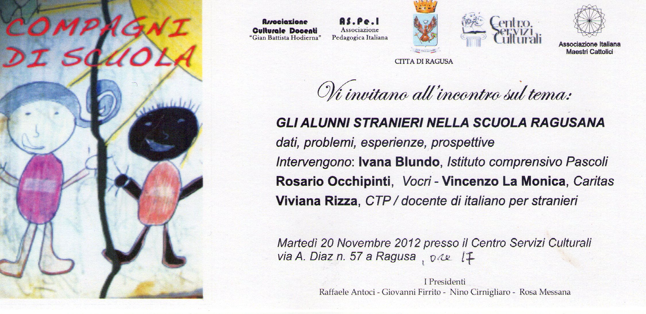 Incontro sul tema:"Gli alunni stranieri nella scuola ragusana" - 20 novembre - Centro Servizi Culturali