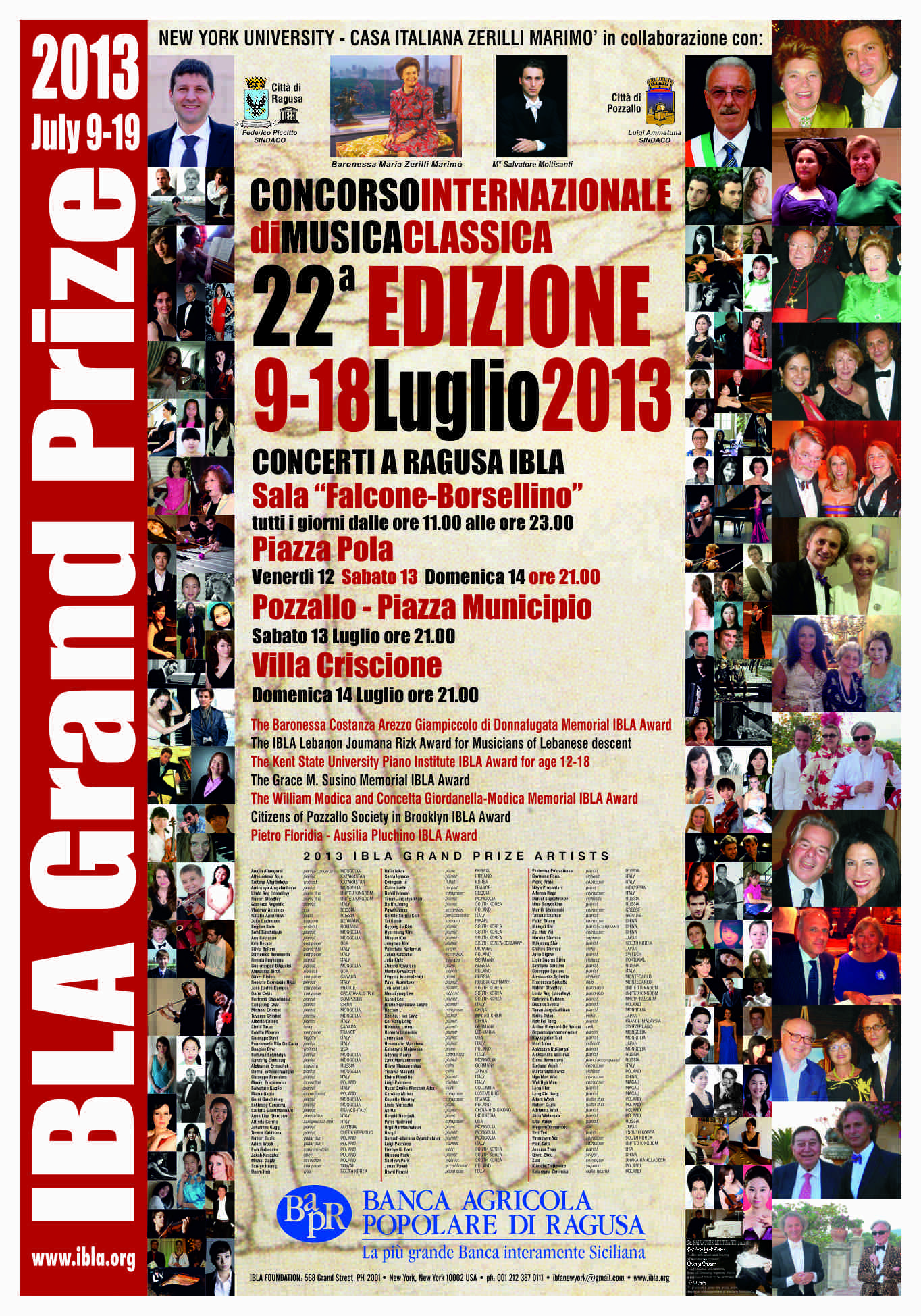 Avrà inzio stasera la 22° Edizione di "Ibla Grand Prize 2013" la manifestazione vedrà l'esibizione a Ragusa Ibla di numerosi artisti internazionali e si concluderà domenica 14 luglio a Villa Criscione.