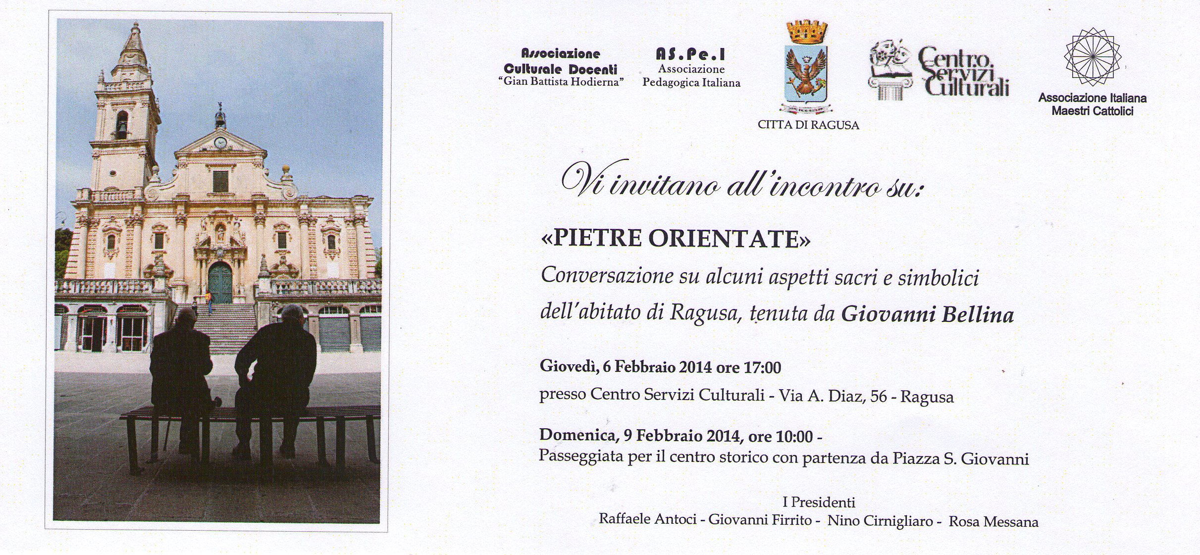 presenta la Conferenza "PIETRE ORIENTATE" - Conversazione su alcuni aspetti sacri e simbolici dell'abitato di Ragusa