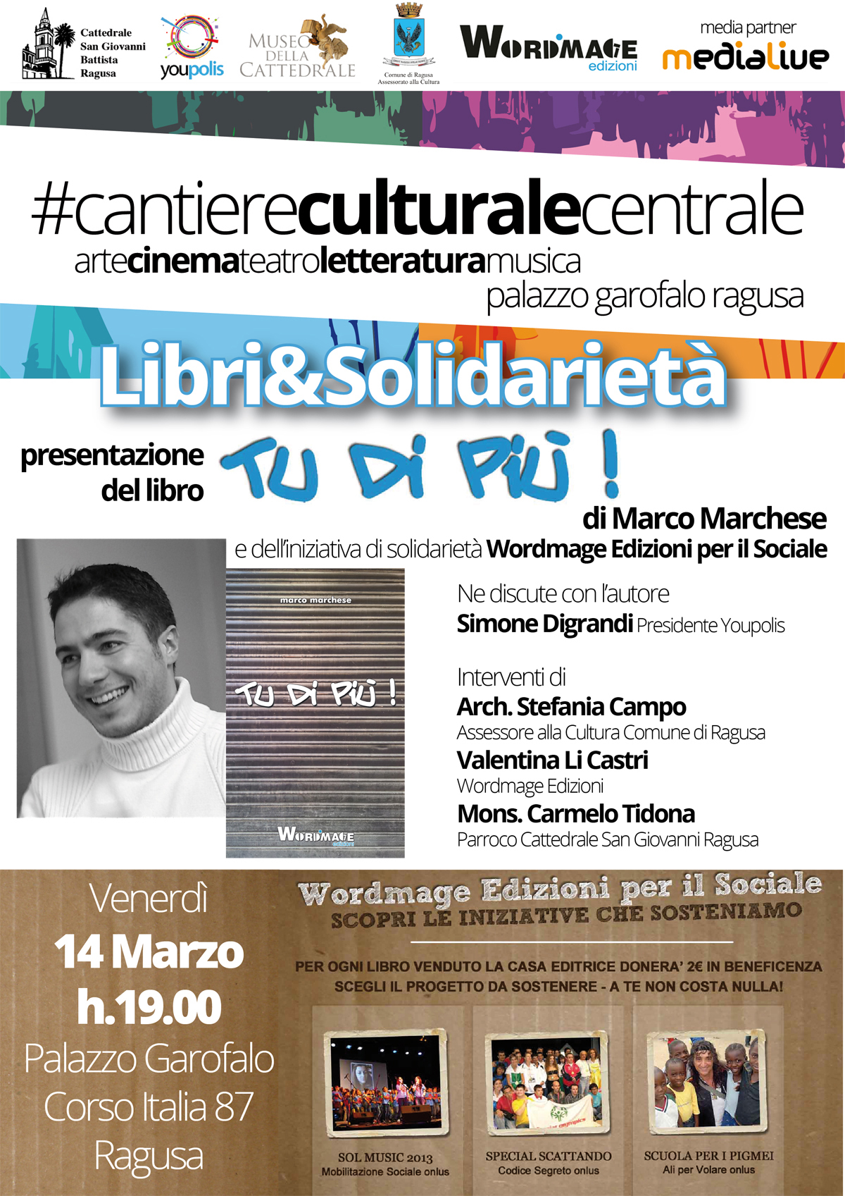 Presentazione libro:"Tu di più" di Marco Maltese- 14 marzo - Palazzo Garofalo C.so Italia,87 Ragusa