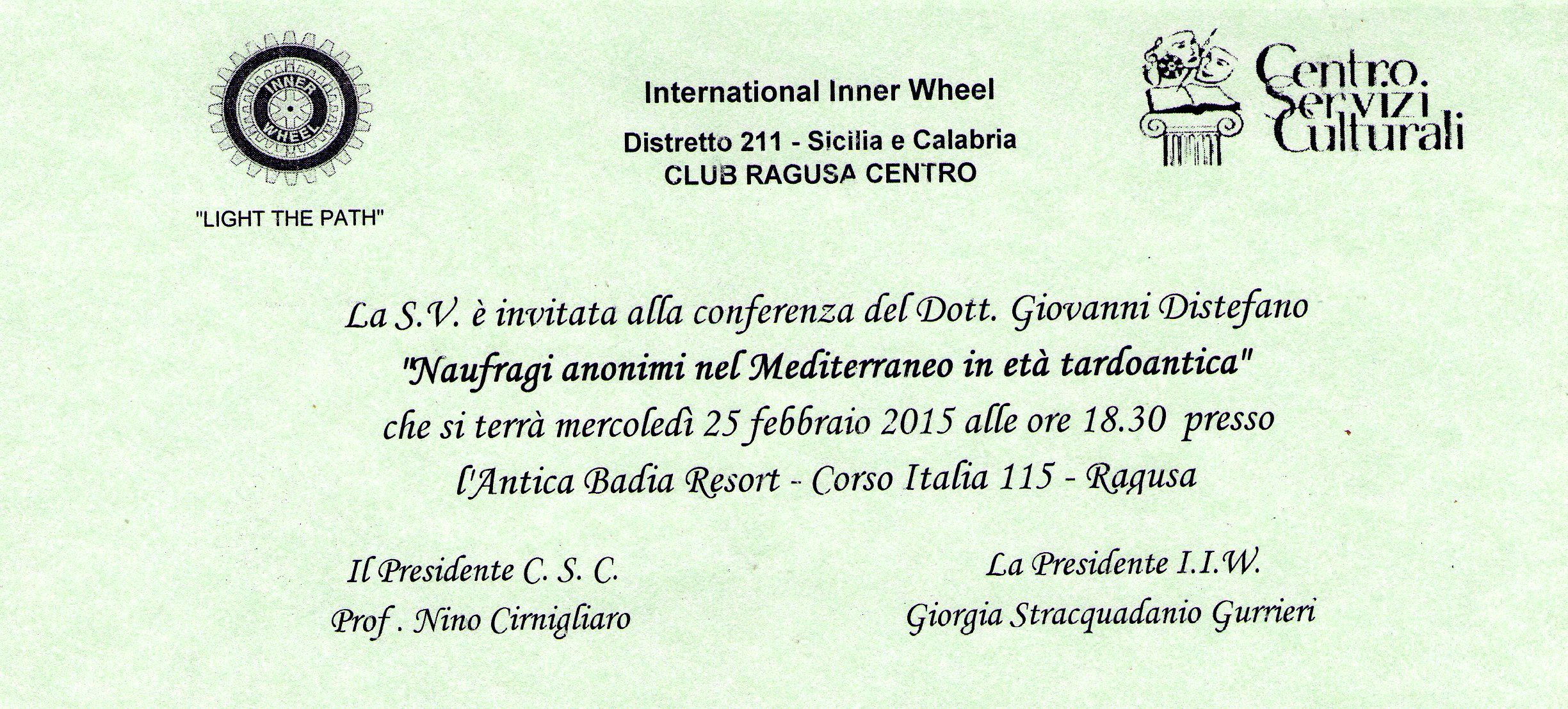 Conferenza:"Naufragi anonimi nel mediterraneo in età tardoantica" - 25 febbraio - Antica Badia Resort (C.so Italia, 115 – Ragusa)