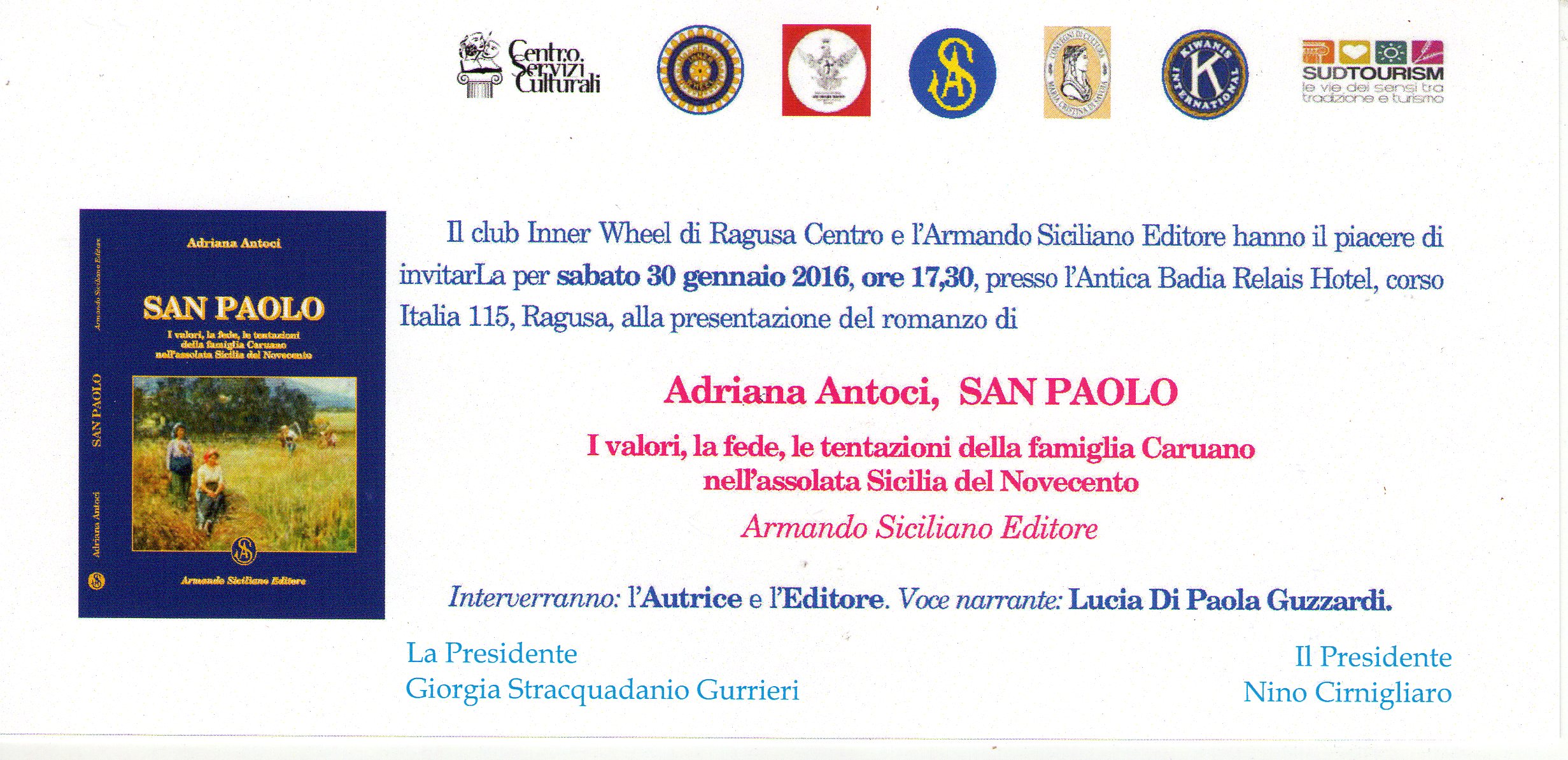 Presentazione libro:"“San Paolo”- I valori, la fede, le tentazioni della famiglia Caruano nell’assolata Sicilia del Novecento" - 30 gennaio - Antica Badia Relais Hotel (C.so Italia, 115 – Ragusa)