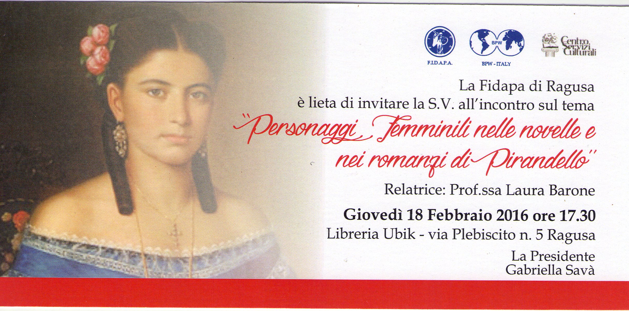 Incontro sul tema “Personaggi femminili nelle novelle e nei romanzi di Pirandello” - 18 febbraio - Libreria Ubik – Via Plebiscito, 5 – Ragusa