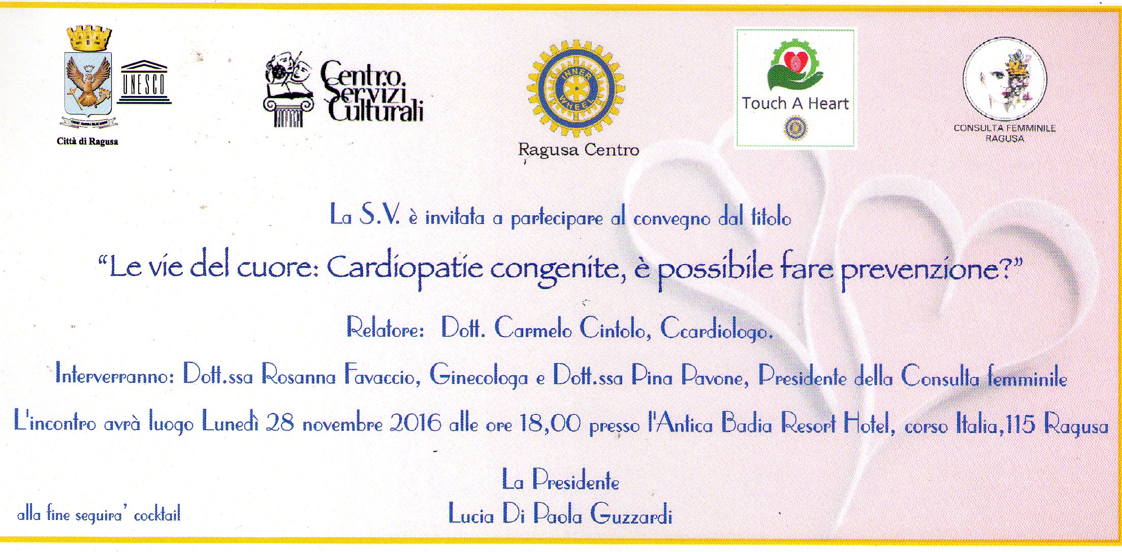 Convegno:“Le vie del cuore: cardiopatie congenite, è possibile fare prevenzione?” - 28 novembre - Antica Badia Resort Hotel (C.so Italia, 115 – Ragusa)