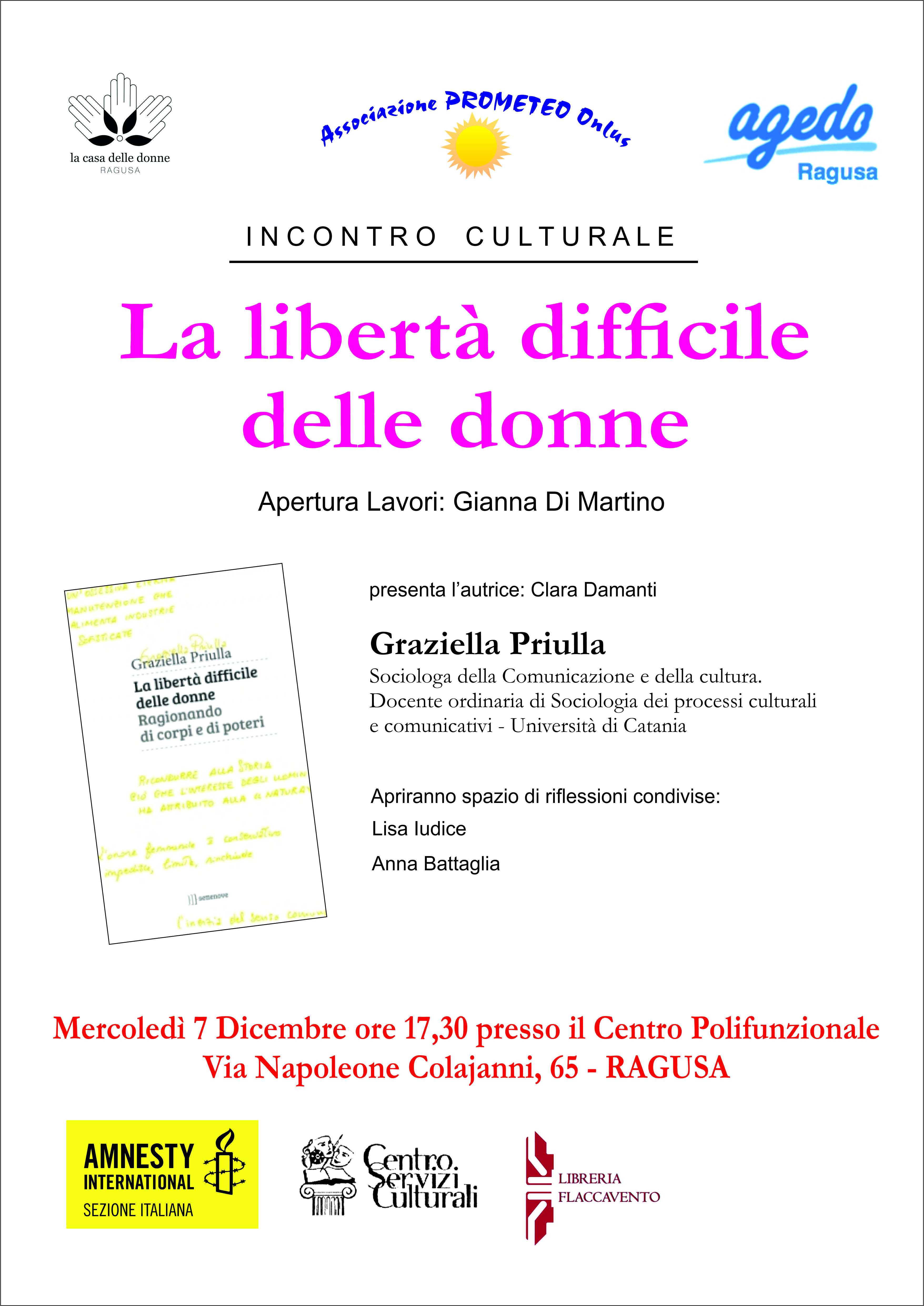 Presentazione libro:"La libertà difficile delle donne-Ragionando di corpi e di poteri” - 7 dicembre - Sala Convegni Centro Polifunzionale "Colajanni"