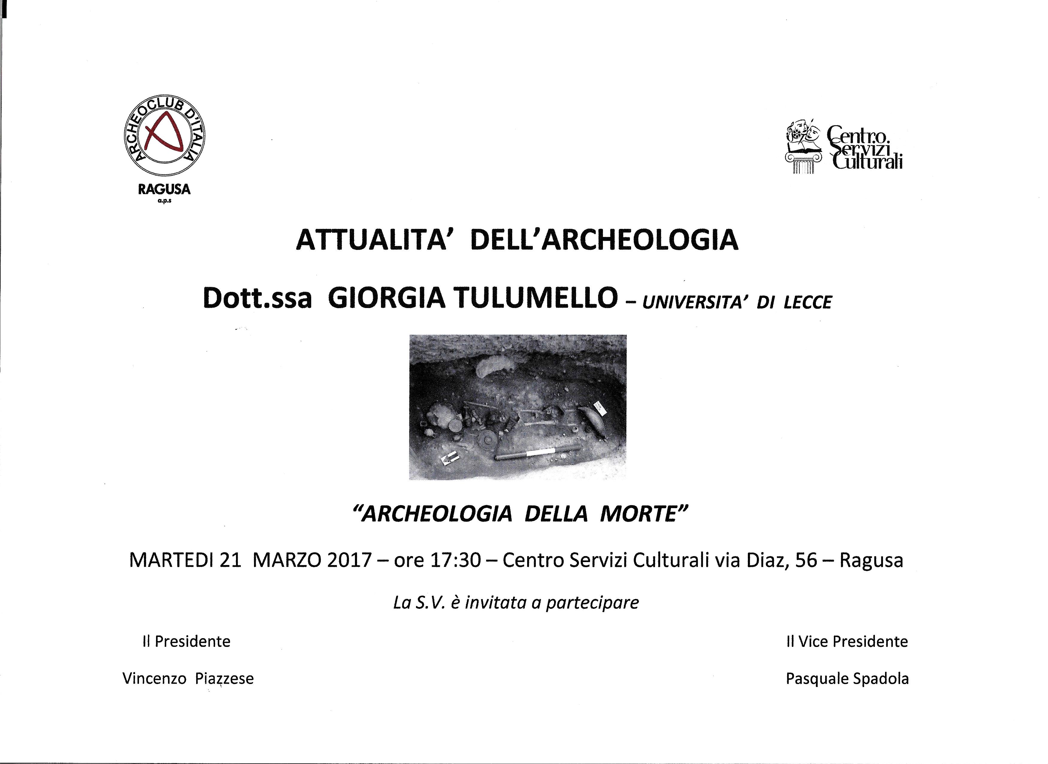 Conferenza sul tema "Archeologia della morte" 21/03/2017