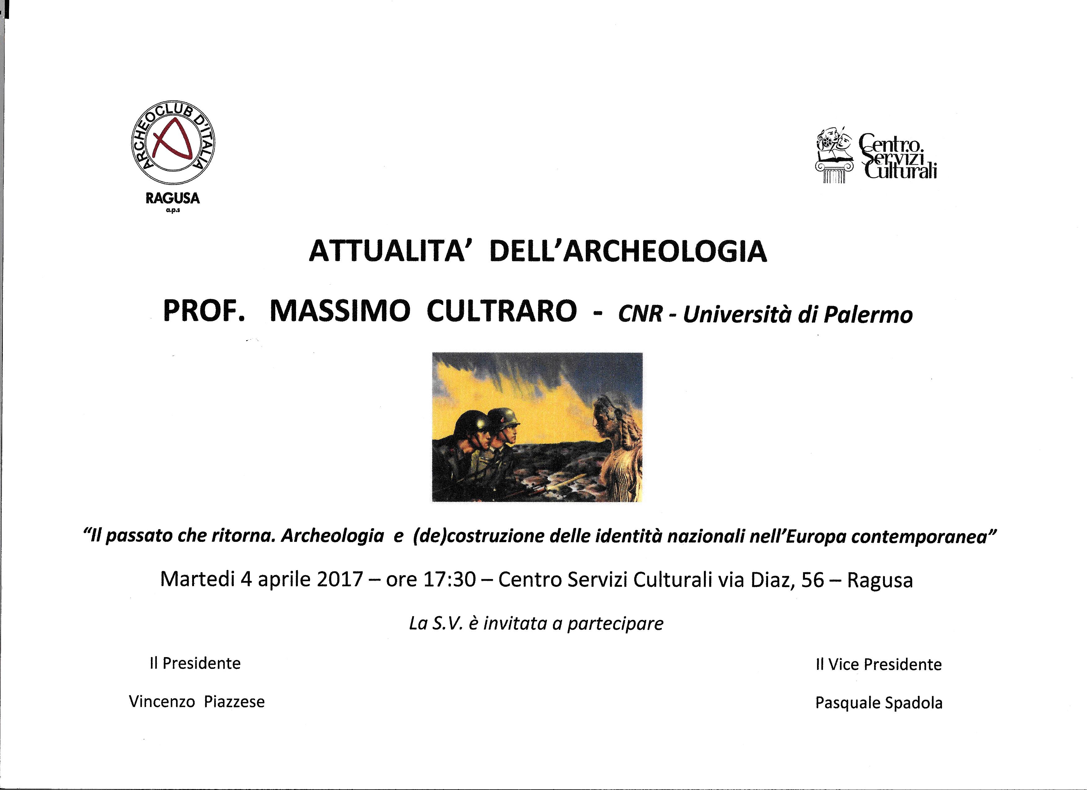 Conferenza:"Il passato che ritorna. Archeologia e (de)costruzione delle identità nazionali nell’Europa contemporanea” - 4 aprile - Centro Servizi Culturali (Via A.Diaz, 56 – Ragusa)