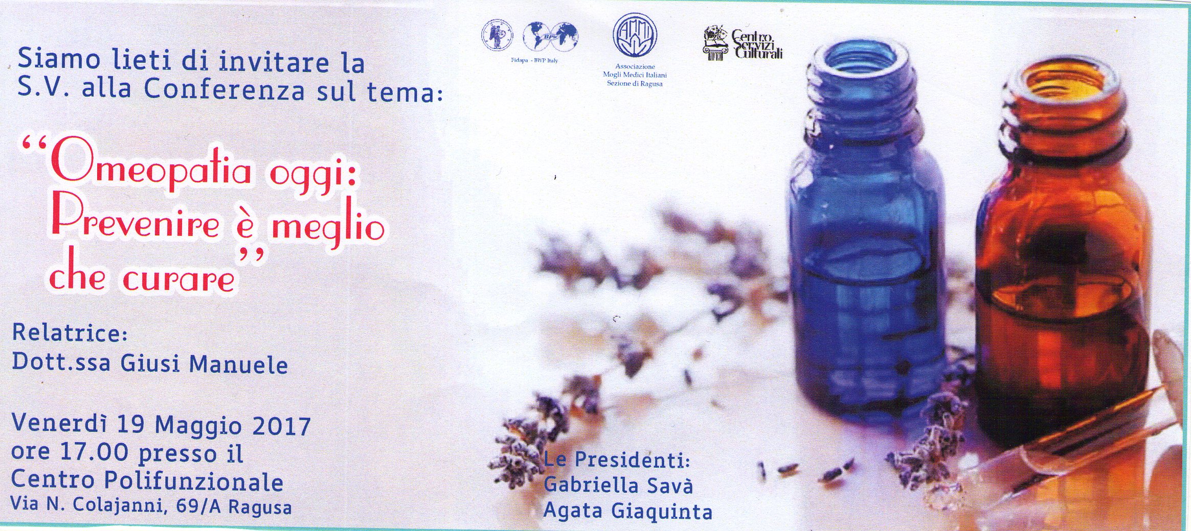 Conferenza: “Omeopatia oggi: Prevenire è meglio che curare” - 19 maggio 2015 - Centro Polifunzionale di Via N. Colajanni, 69/A – Ragusa