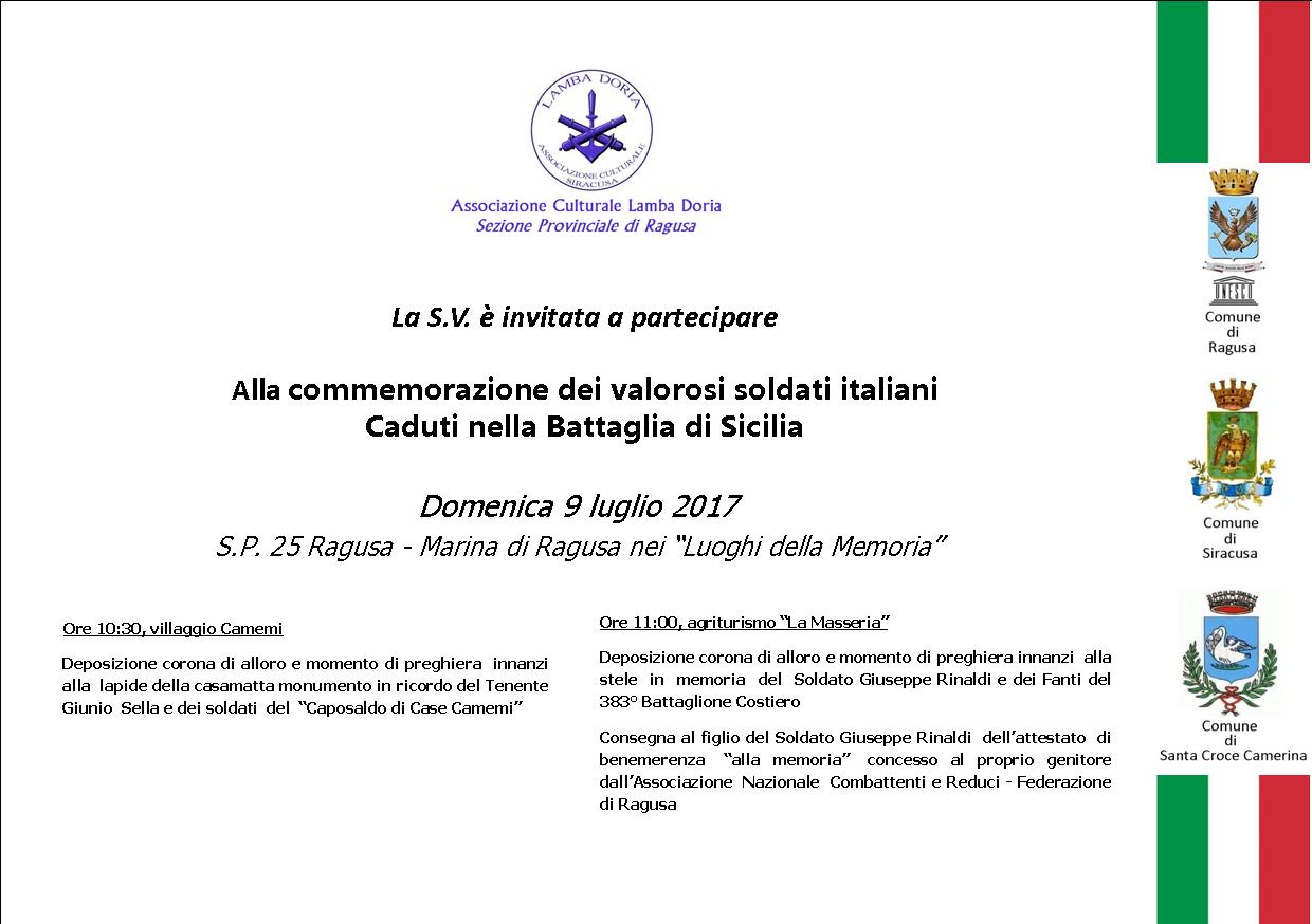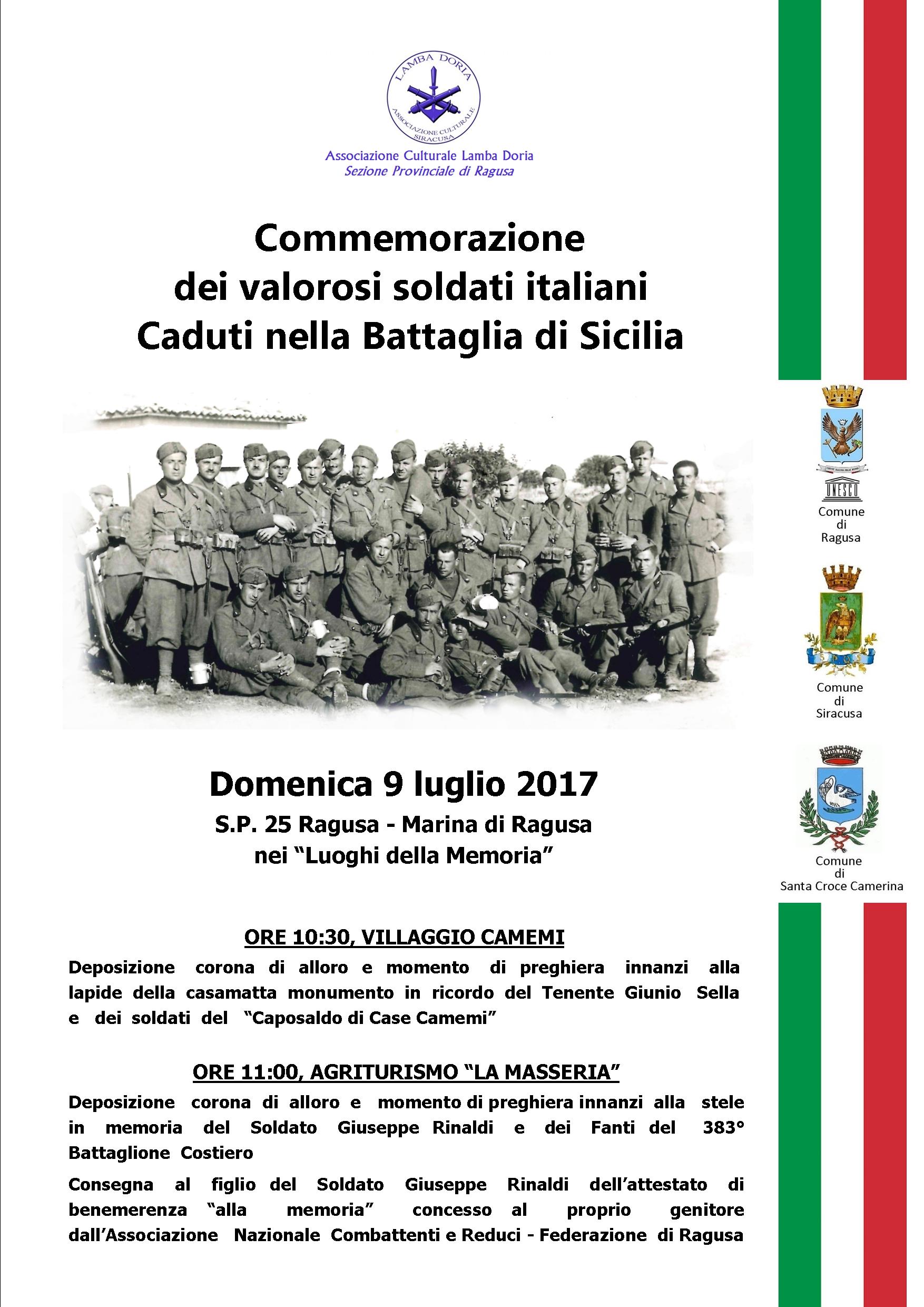 Commemorazione dei valorosi soldati italiani Caduti nella Battaglia di Sicilia - 9 luglio - S.P.25 Ragusa-Marina di Ragusa nei "Luoghi della memoria"