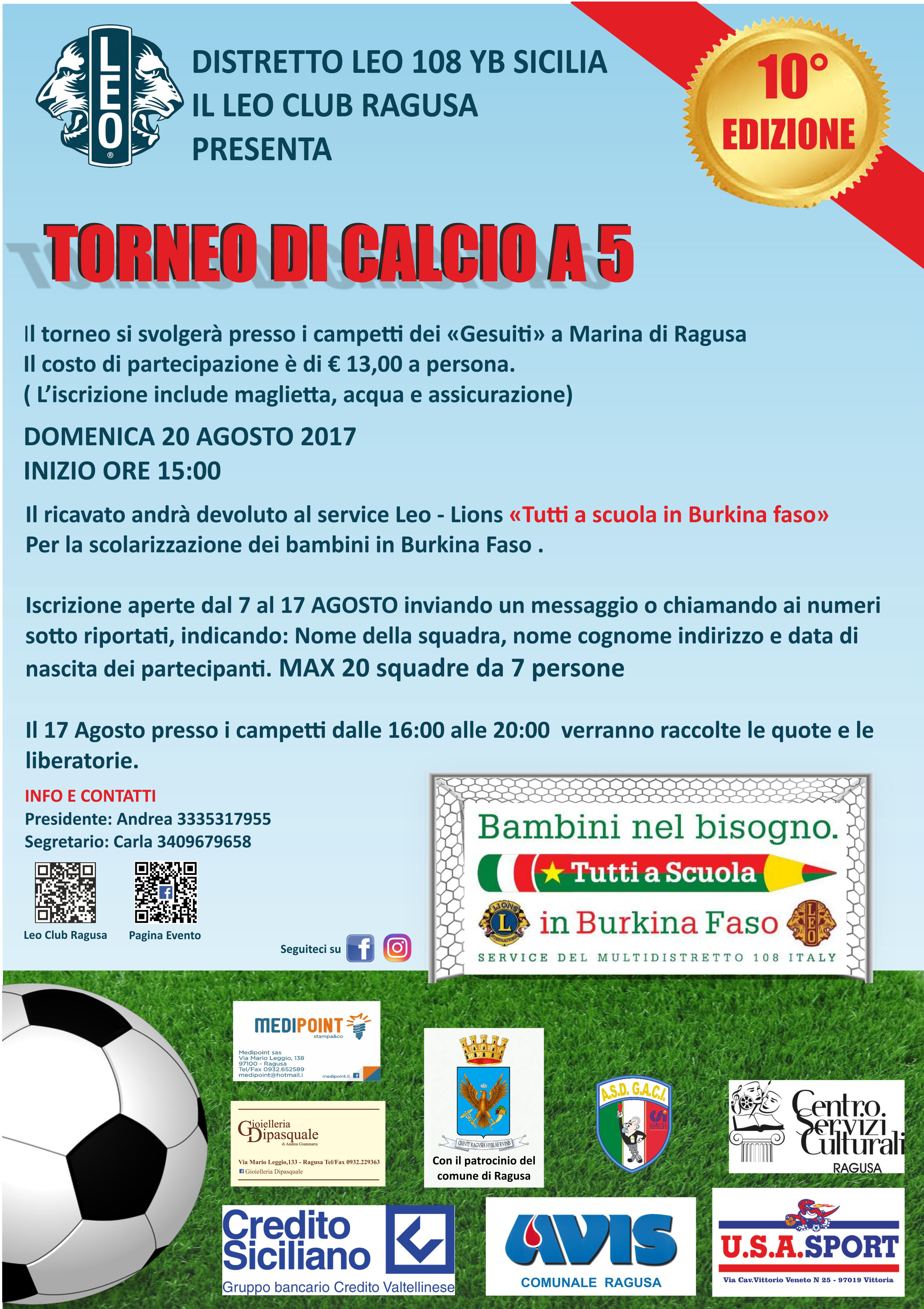 Il ricavato andrà devoluto al service Leo - Lions «Tutti a scuola in Burkina Faso» Per la scolarizzazione dei bambini in Burkina Faso .