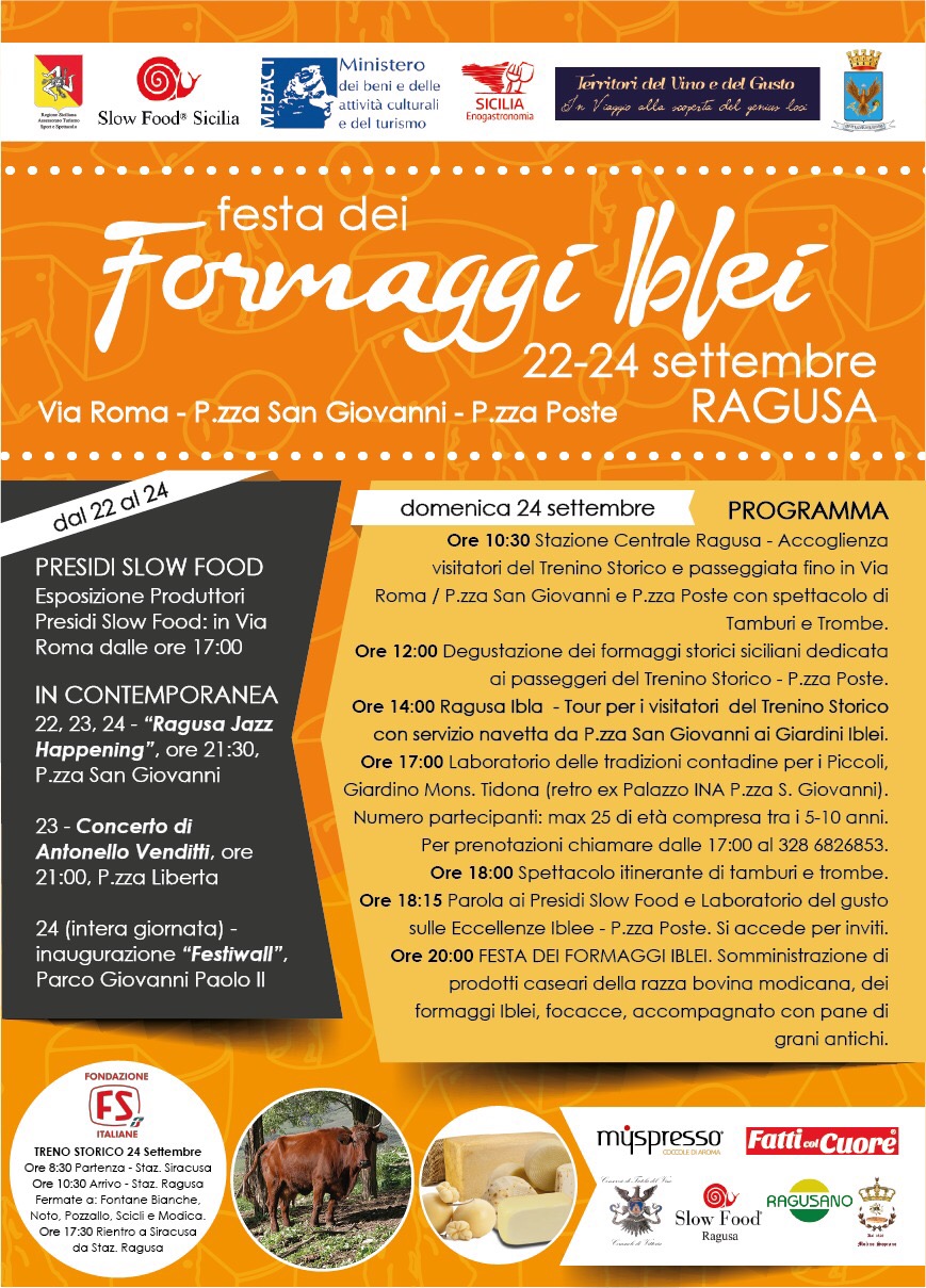 - dal 22 al 24 Settembre dalle ore 17,00 alle ore 22,00 in Via Roma Esposizione dei produttori dei Presidi Slow Food a cura della Condotta di Ragusa dell’Associazione Slow Food