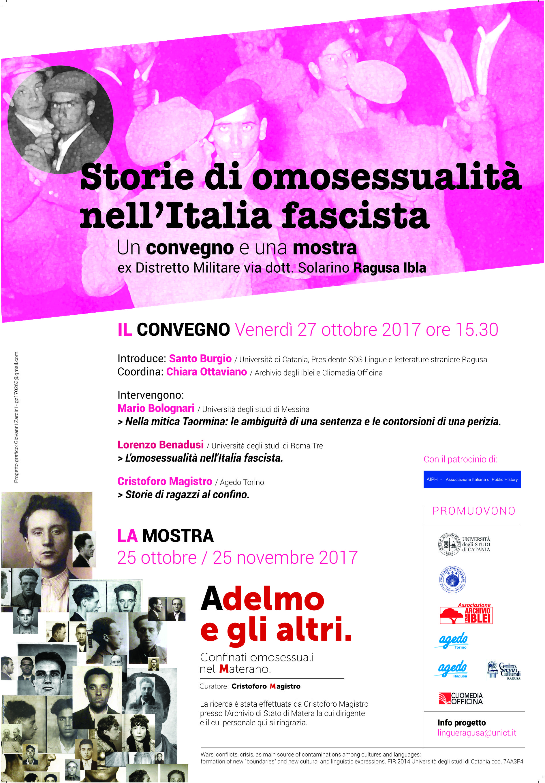 Convegno: "Storie di omosessualità nell'Italia fascista" - 27 ottobre - ex Distretto Militare - via dott. Solarino Ragusa Ibla - Inaugurazione mostra "Adelmo e gli altri"