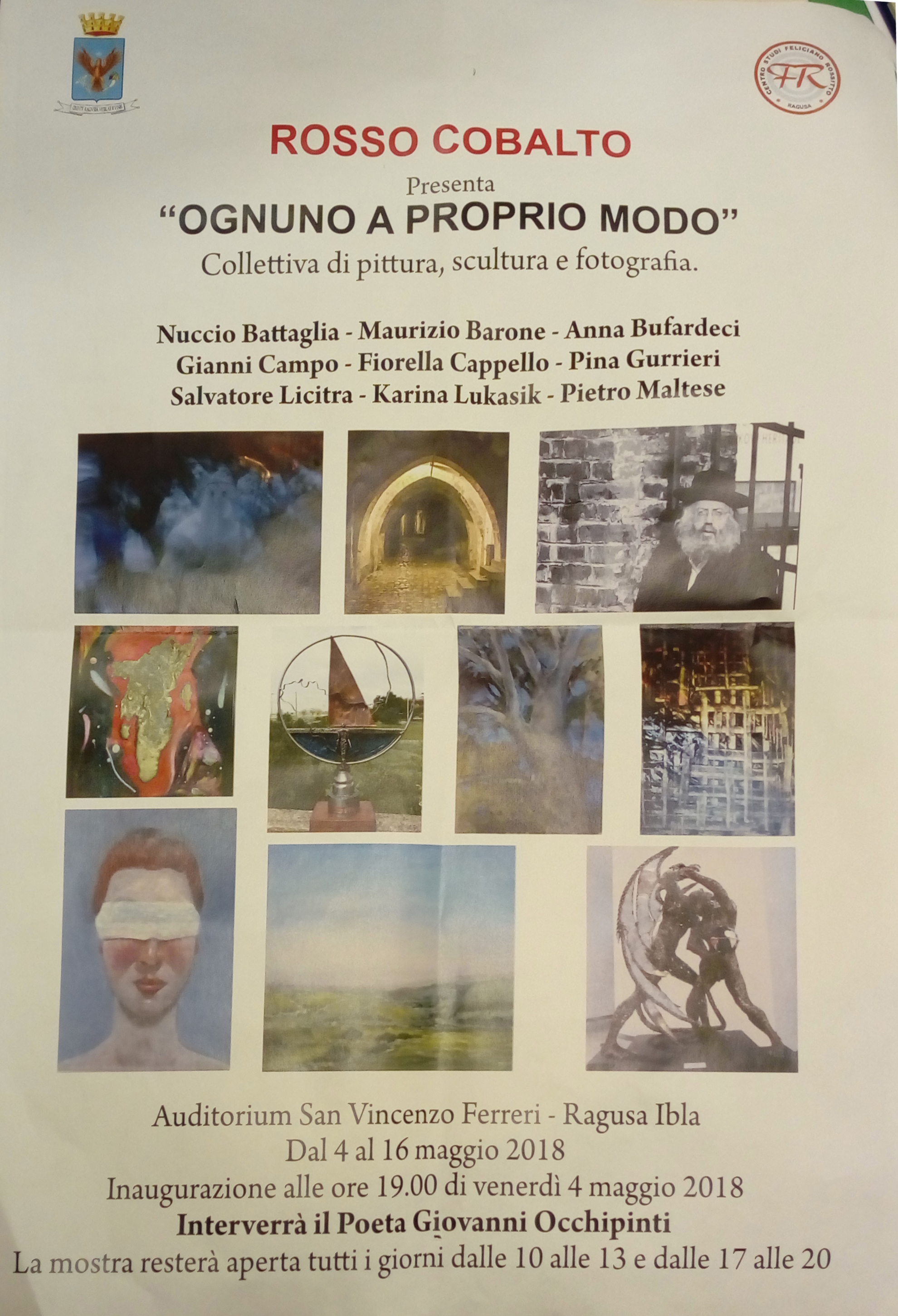 Collettiva di pittura, scultura e fotografia: “Ognuno a proprio modo” - Dal 4 al 16 maggio - Auditorium San Vincenzo Ferreri - Ragusa Ibla