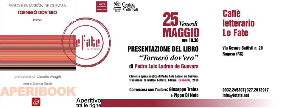 Presentazione libro: "Tornerò dov'ero" di Pedro Luis Ladron de Guevara - 25 maggio - Caffè Letterario Le Fate (Via C.Battisti, 20 - Ragusa)