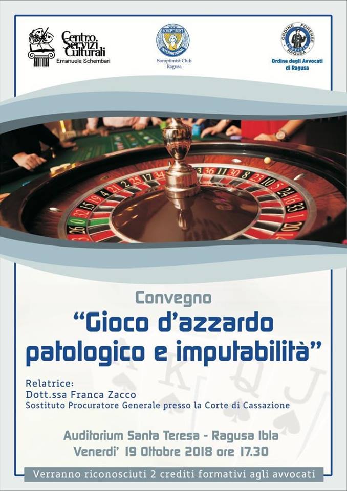 Convegno: "Gioco d'azzardo patologia e imputabilita'" 19/10/2018 -Auditorium Santa Teresa - Ragusa Ibla