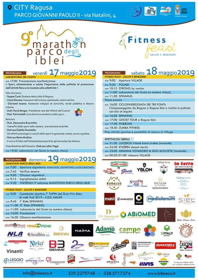 Il 17, 18 e 19 maggio, si terrà la manifestazione sportiva “Marathon Parco degli Iblei/ fitnees feat”, l'evento è organizzata dall'Associazione sportiva dilettantistica Bike & Co con il patrocinio del Comune di Ragusa.