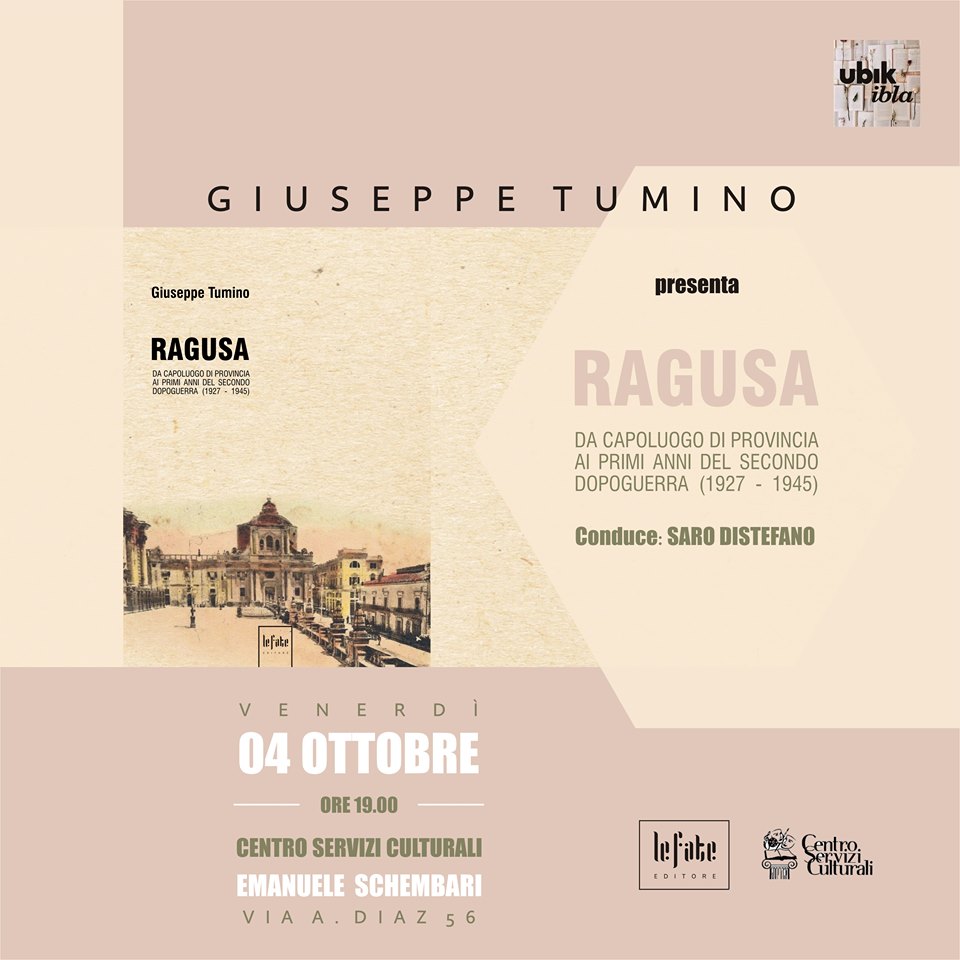 Presentazione volume “Ragusa, da capoluogo di provincia ai primi anni del secondo dopoguerra 1927-1945” di Giuseppe Tumino - 4 ottobre - Centro Servizi Culturali E.Schembari (via A.Diaz, 56 – Ragusa)
